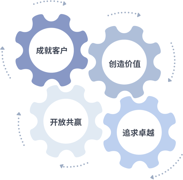 成就客户是一切决策的出发点,创造价值是衡量所有工作的标准,追求卓越是PA旗舰厅做事做人的态度,开放共赢是PA旗舰厅的格局也是最终的结果。价值观的齿轮环环相扣,推动着组织里的每个人不断向前。